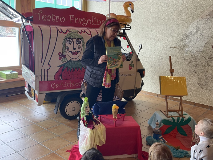 Im Rahmen von SCHUKULU durften jede der sechs Basisstufenklassen von Beromünster durften sich während gut einer Stunde vom "Wandertheater" Fragolina in eine wundervolle Welt voller Geschichten verführen lassen.